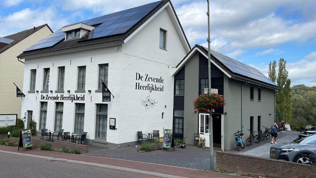 Na terugkomst uit Rothenburg o.d. Tauber hebben we een paar dagen met slecht weer gehad. Maar later in de week zou het nog een hele mooie nazomer worden, dus hebben we nog een overnachting in het Zuid-Limburgse Slenaken geboekt, in Gasterij De Zevende Heerlijkheid. De planning was om nog twee mooie fietstochten is deze, voor ons bekende en geliefde omgeving te maken. Dus op donderdag zijn we vroeg op pad gegaan, hebben we de auto geparkeerd om de grote parkeerplaats aan de rand van Slenaken en zijn we op de fiets gestapt om een mooit rondje net over de grens in België te maken. Maar niet voordat we een kop koffie met en heerlijke Limburgse vlaai hebben genuttigd bij Gasterij Berg & Dal – Restaurant en Hotel in Slenaken. Daarna begonnen we aan de fietstocht, met meteen buiten Slenaken een fikse klim richting Ulvent. De weg is daar ook meteen de grens tussen Nederland en België.