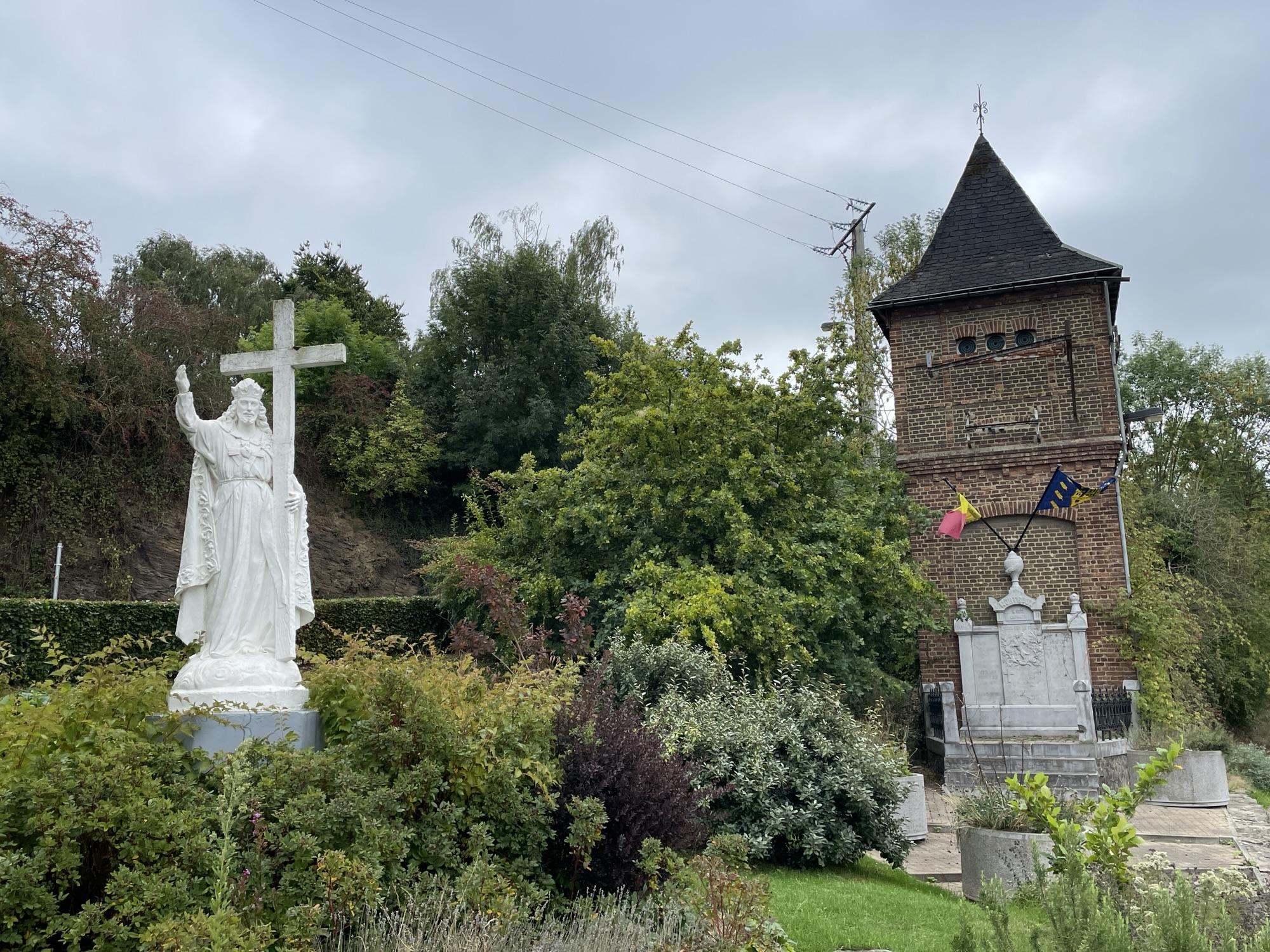 Aangekomen in Ulvent bleek de weg naar ons volgende fietsknooppunt afgesloten te zijn en werden we omgeleid via ‘s-Gravenvoeren. Dat was echter geen straf want het was een hele mooie weg, ook weer op de grens. In ‘s-Gravenvoeren bogen we linksaf richting Schophem waar we de oorspronkelijke route weer oppakten. Even later kwamen we door Warage, waar we een pauzeplek hebben gezocht, maar niet gevonden. Dus maar weer even verder naar Mortroux. Daar hebben we even op een bankje gezet, net voordat we weer een flinke klim moesten maken.