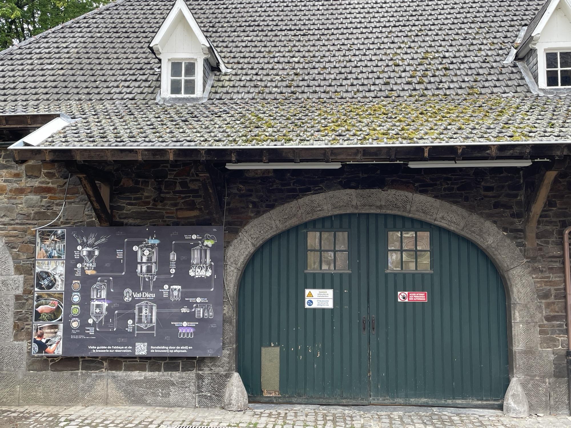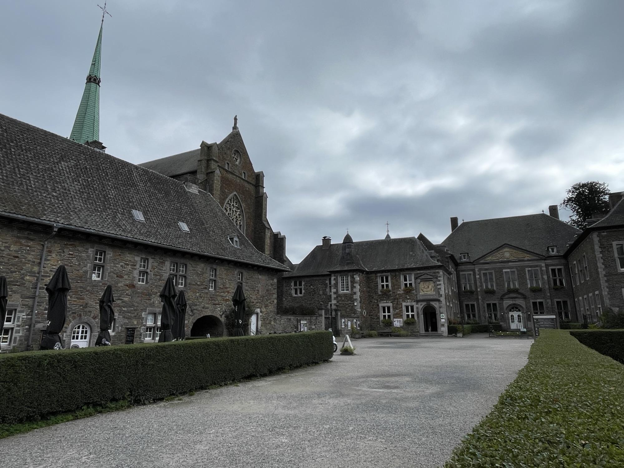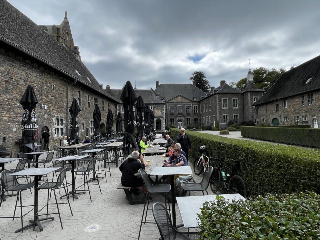 Korte tijd later bereikten we het klooster van Val Dieu. Nooit geweten dat dat zo dicht bij Nederland lag. Ik kende de trappisten beiren van Val Dieu, dus dit trok wel mij aandacht. We zijn naar de binnenplaats gegaan, hebben de fietsen geparkeerd en zijn naar het winkeltje gegaan om wat biertjes te kopen. Daarna hebben we er wat rondgelopen, foto’s gemaakt en tenslotte op het terras genoten van een heerlijk soepje en natuurlijk een geweldig lekkere Val Dieu Brûn.