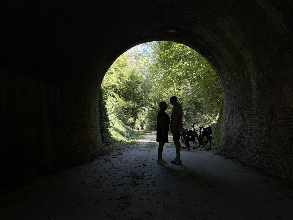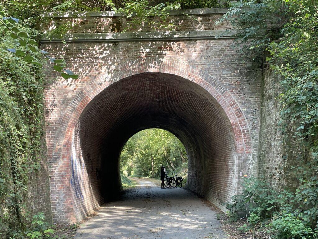 Het was weer tijd om verder te gaan. Maar deze plek is zeker iets om nog een keer naar terug te gaan om wat langer te genieten van wat de paters te bieden hebben. De route ging verder richting naar Aubel. Een Waals plaatsje waar we al vaker zijn geweest. Vanuit Aubel loopt een Ravel route tot Hombourg. Een Ravel route is een oude spoorlijn die is omgevormd tot een fietspad. In België zijn meerdere van dergelijke prachtige routes, een aanrader.