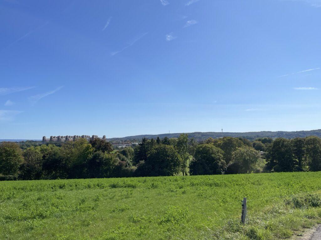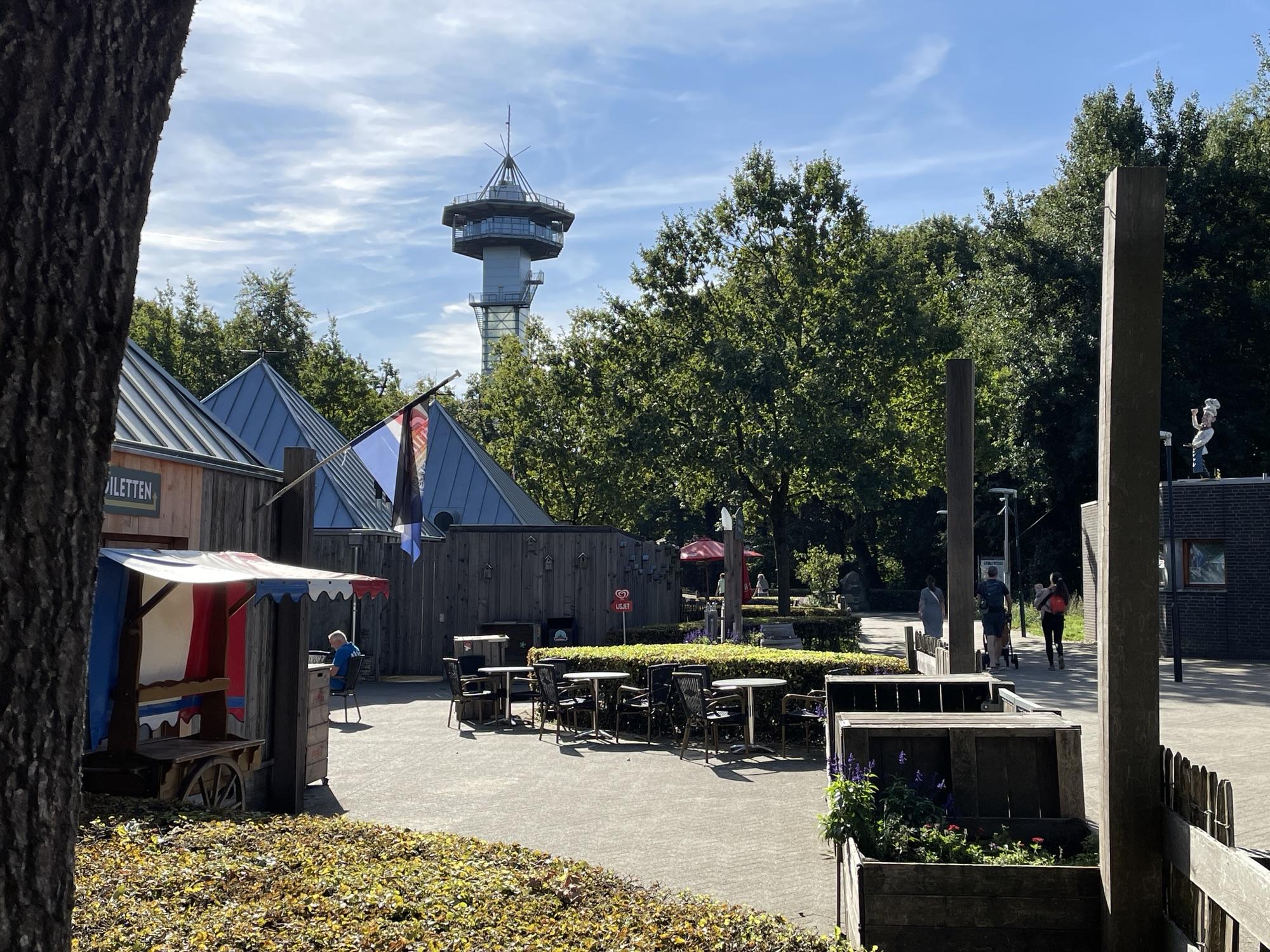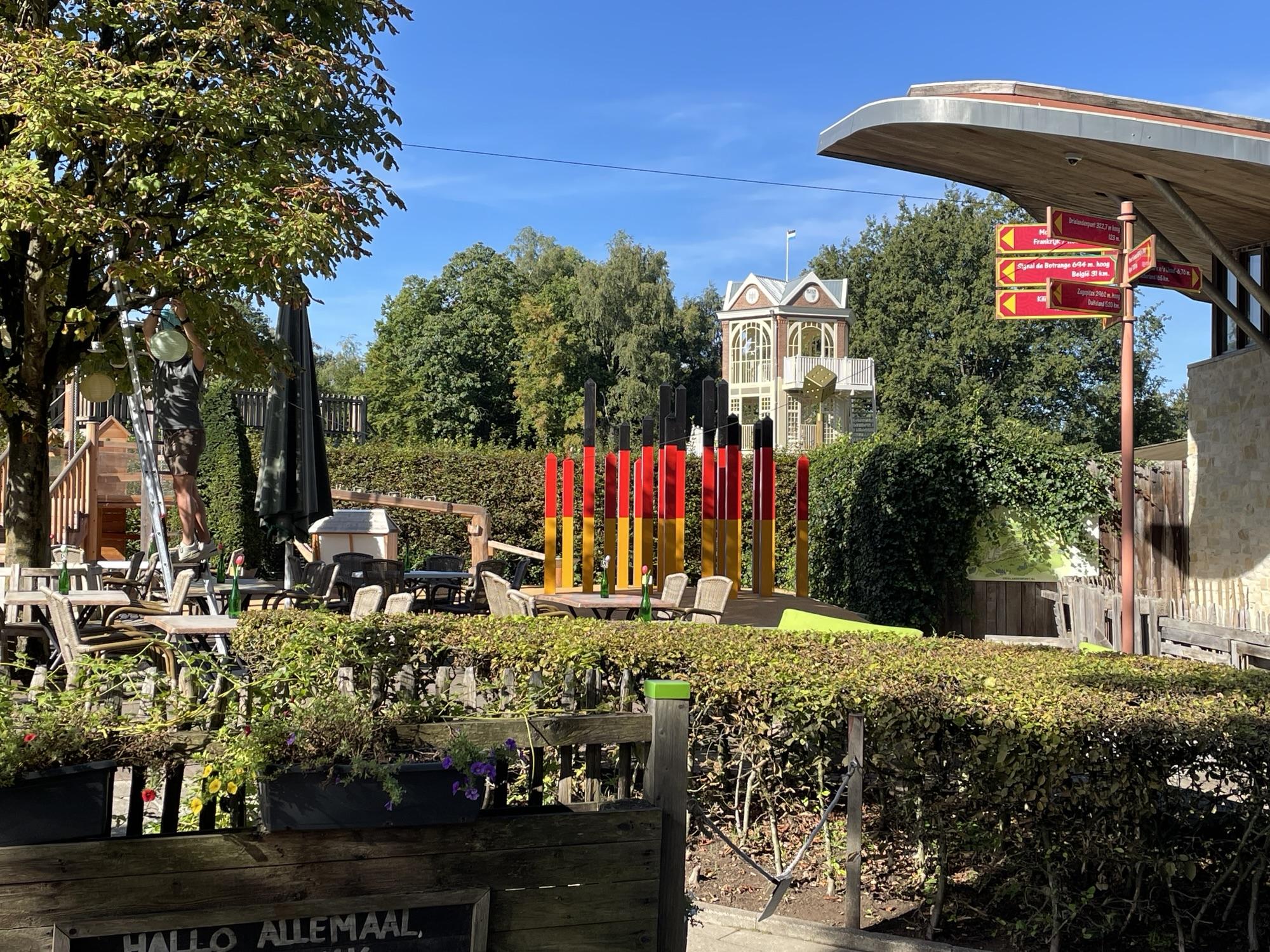 De allereerste versie van de route die ik had gepland ging onder het drielandenpunt op de Vaalserberg door. Maar bij nader inzien leek het erop dat het pad over de bosrijke heuvel niet verhard en nogal stijl was. Ine had er geen goed gevoel over, dus heb ik de route aangepast zodat we via Gemmenich de klim naar de top van de Vaalserberg namen. Daar aangekomen hebben we de fietsen gestald en zijn we met een drankje op een terrasje gaan zitten. Het was wederom een hele mooie zonnige dag.